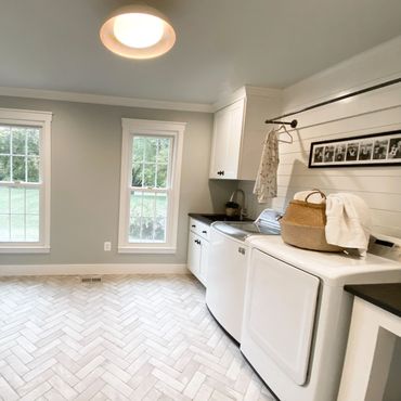 This young couple bought a fixer-upper in Davidsonville and enlisted THD to transform the entire first floor. The result? A spacious gourmet kitchen with views of the stunning backyard pool, a welcoming entryway, and a deluxe laundry and mudroom. We even managed to fit in a charming little butler’s bar. Now, the neighbors—who have the same floorplan—are amazed by the transformation and keep asking THD for the secrets behind how we maximized the space.