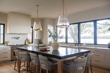 Our clients purchased a dated waterfront property with a plan to build their future dream home. Keeping only the foundation, the newly built home includes a spacious open floor-plan with panoramic waterfront views from every room. We were able to add an expansive modern kitchen, a luxurious first floor ensuite, well quipped mudroom and laundry room, a screened in porch, and a large walk in pantry. Designer touches are abound in this spaces elevating the look and feel of this new home.