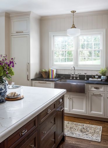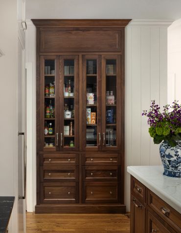 After spending ten years in the Atlanta area, our clients sought to infuse their home with a touch of southern elegance. As passionate cooks and entertainers, they knew the kitchen had to be the heart of the home. It had to be durable enough to handle every pasta sauce spill and red wine mishap, yet still exude warmth and character. We brought together commercial-grade appliances with custom cabinetry and hardware to create a space that feels both practical and luxurious. The rich walnut finishes, paired with polished nickel and brass accents, promise to stand the test of time. With the help of THD, this home has shed its '90s cookie-cutter feel, embracing a fresh, unique spirit that truly belongs to them.